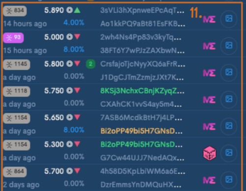 This will show every successful transaction for this collection. Top IDs are Buyers, bottom IDs are Sellers. If a buyer is shown as **green**, it means the wallet is accumulating. If a seller is shown as **orange**, it means the wallet is dumping. Remember, you can set the Whale threshold in [**Settings.**](https://docs.scalp-empire.com/i-have-a-nestor-now-what/check-your-settings)\*\*\*\*\\