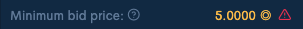 If the submitted bid price is not correct, a notification will appear in the Minimum bid price section