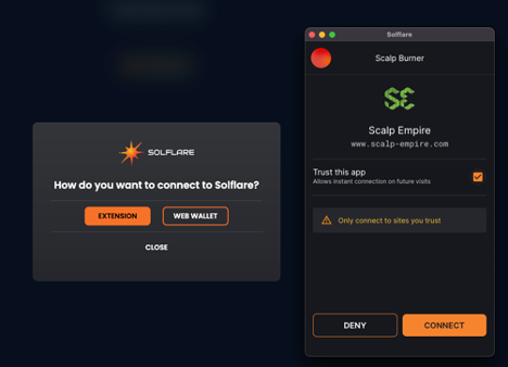 After that, connect to Scalp Empire with your burner and add it as a Trusted app.