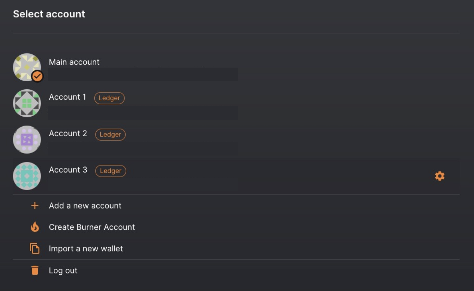 Now you have all your ledger wallets available and you can go further and Create burner wallet and setup auto-approve.\